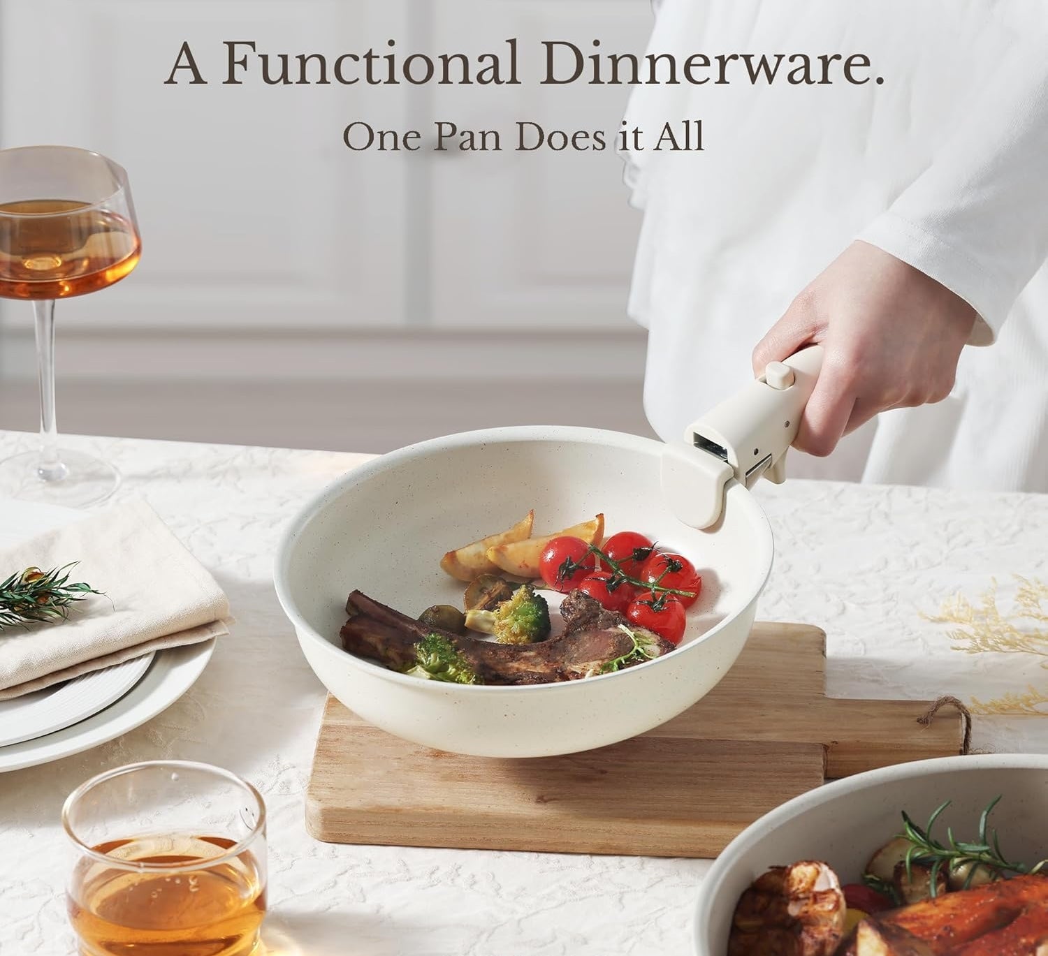 Remove the handle to go straight from stovetop to oven or fridge. -