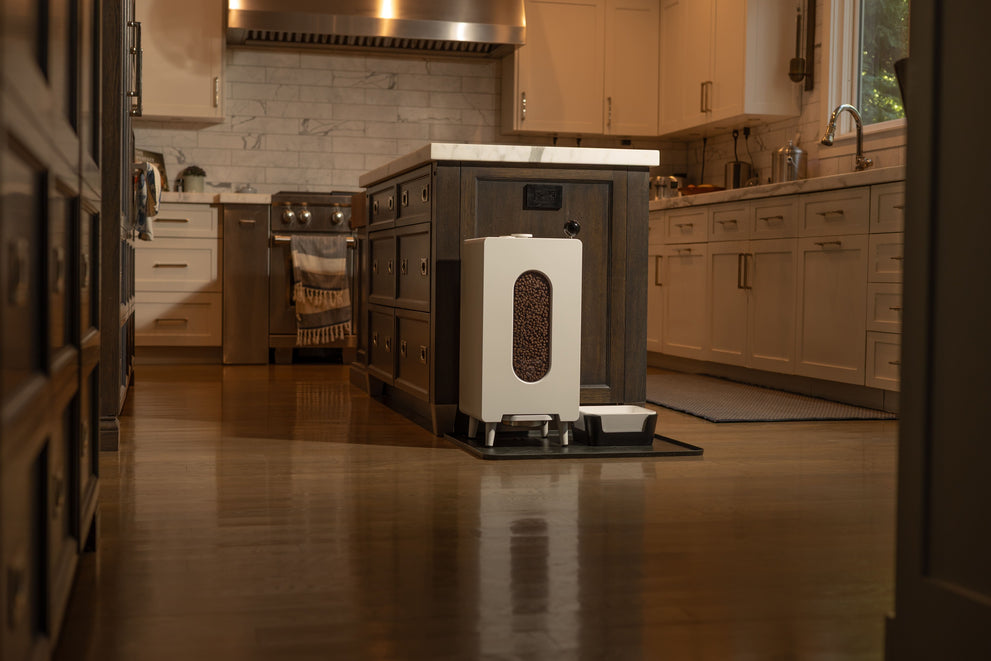 KibbleHaus is a thoughtfully engineered kibble dispenser that combines precise portion control, one-handed ease, and furniture-grade design. Instead of bending down, scooping, or guessing portions, you simply press, dispense, and serve.
