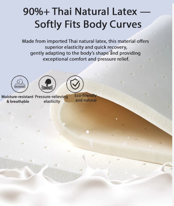 90%+ Thai Natural Latex filling — pressure-relieving, breathable, and eco-friendly